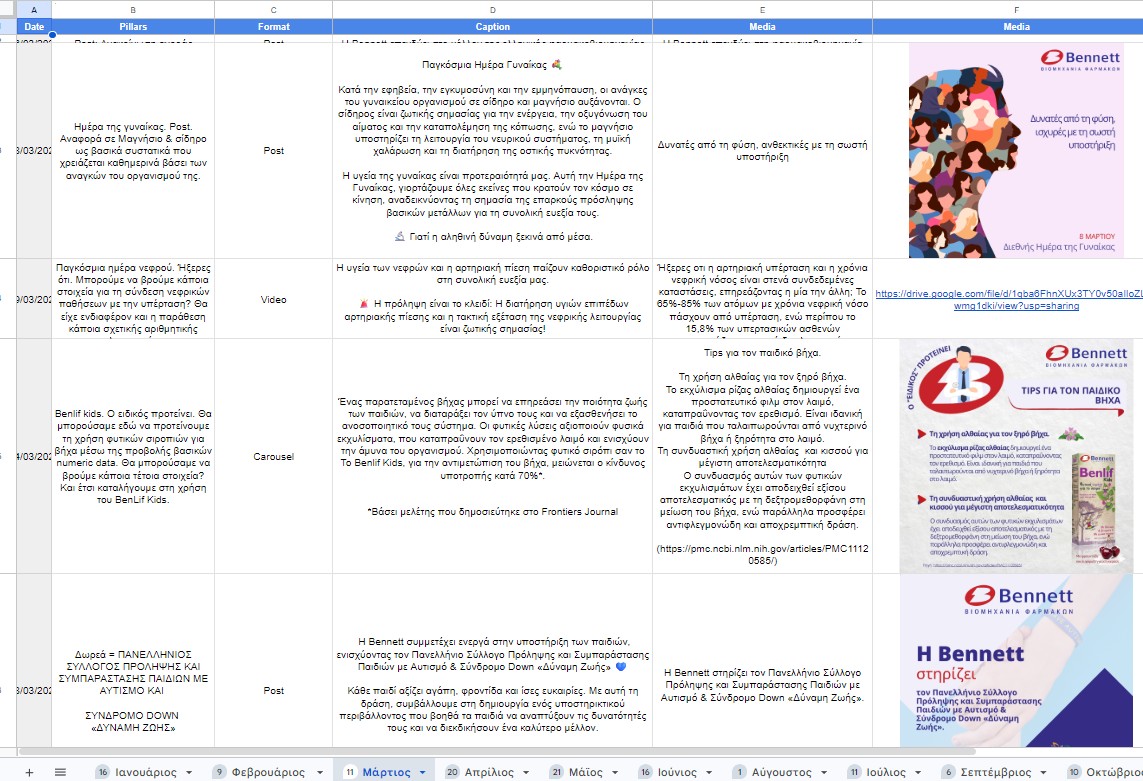 - Content Calendar: Ο προγραμματισμός της θεματολογίας ώστε να υπάρχει συνέπεια και νόημα, αποφεύγοντας τις σπασμωδικές κινήσεις.